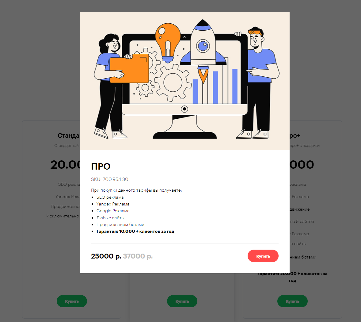 Pop-up оформлен в индивидуальном стили, как и весь сайт